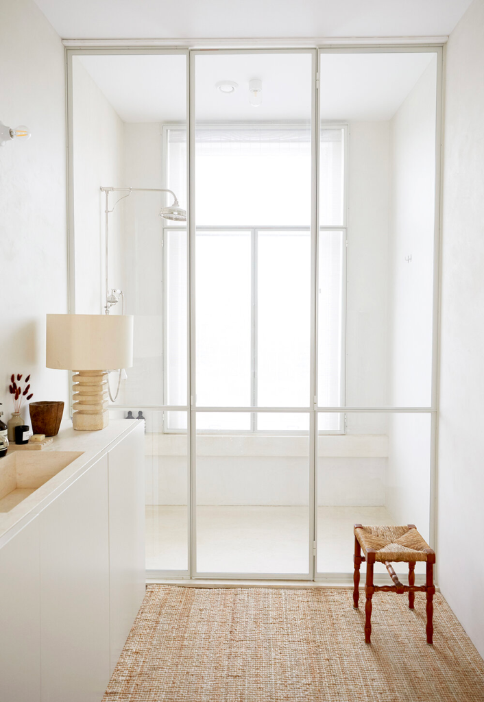 • Butt-glazed glass walls creating seamless corners